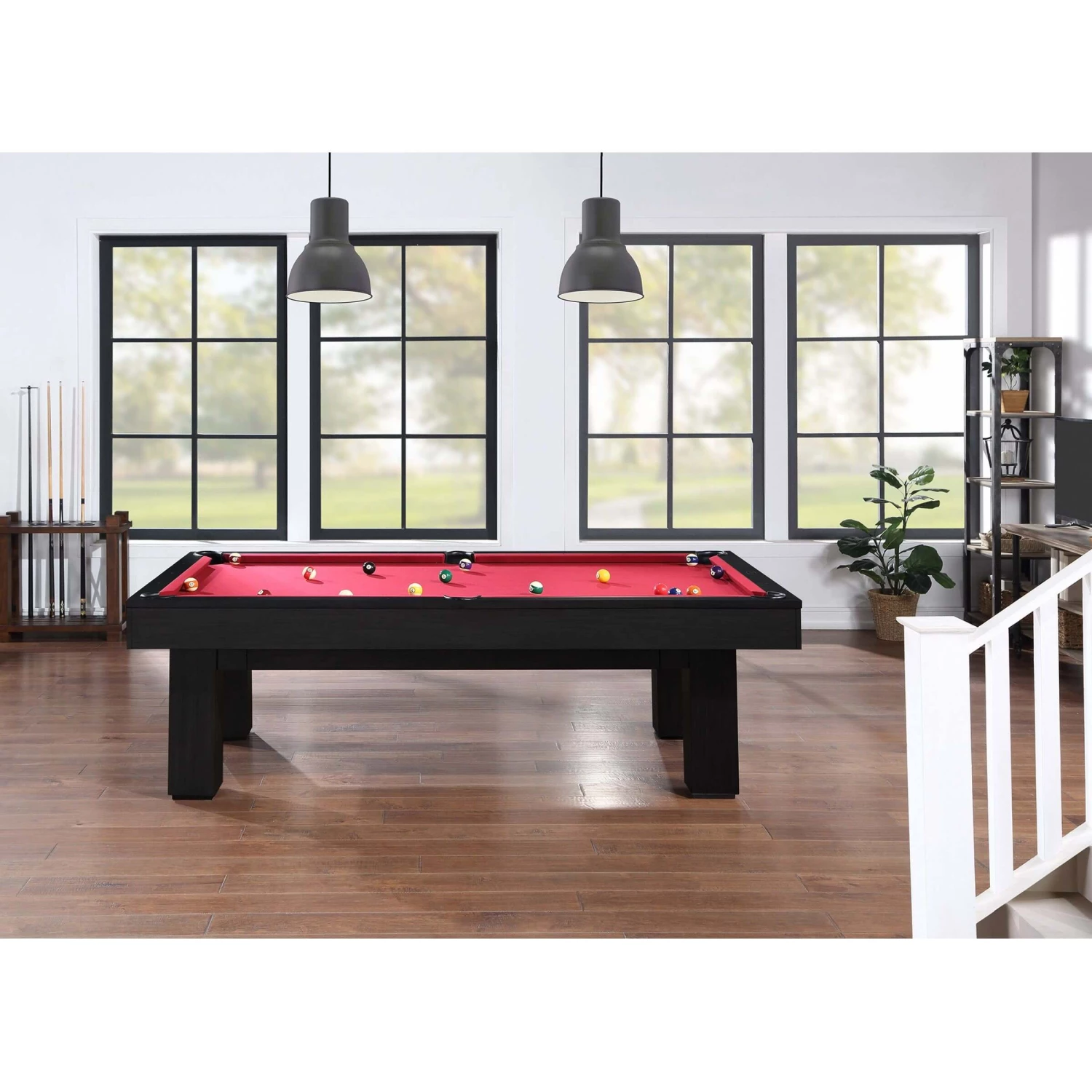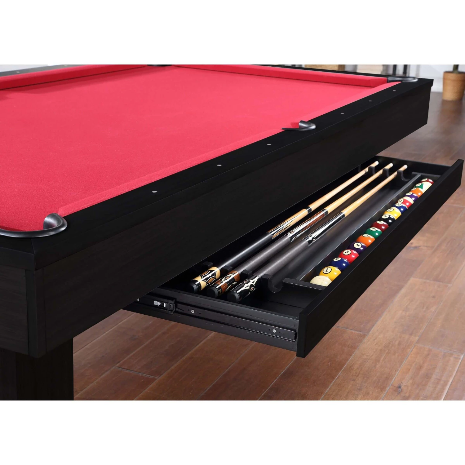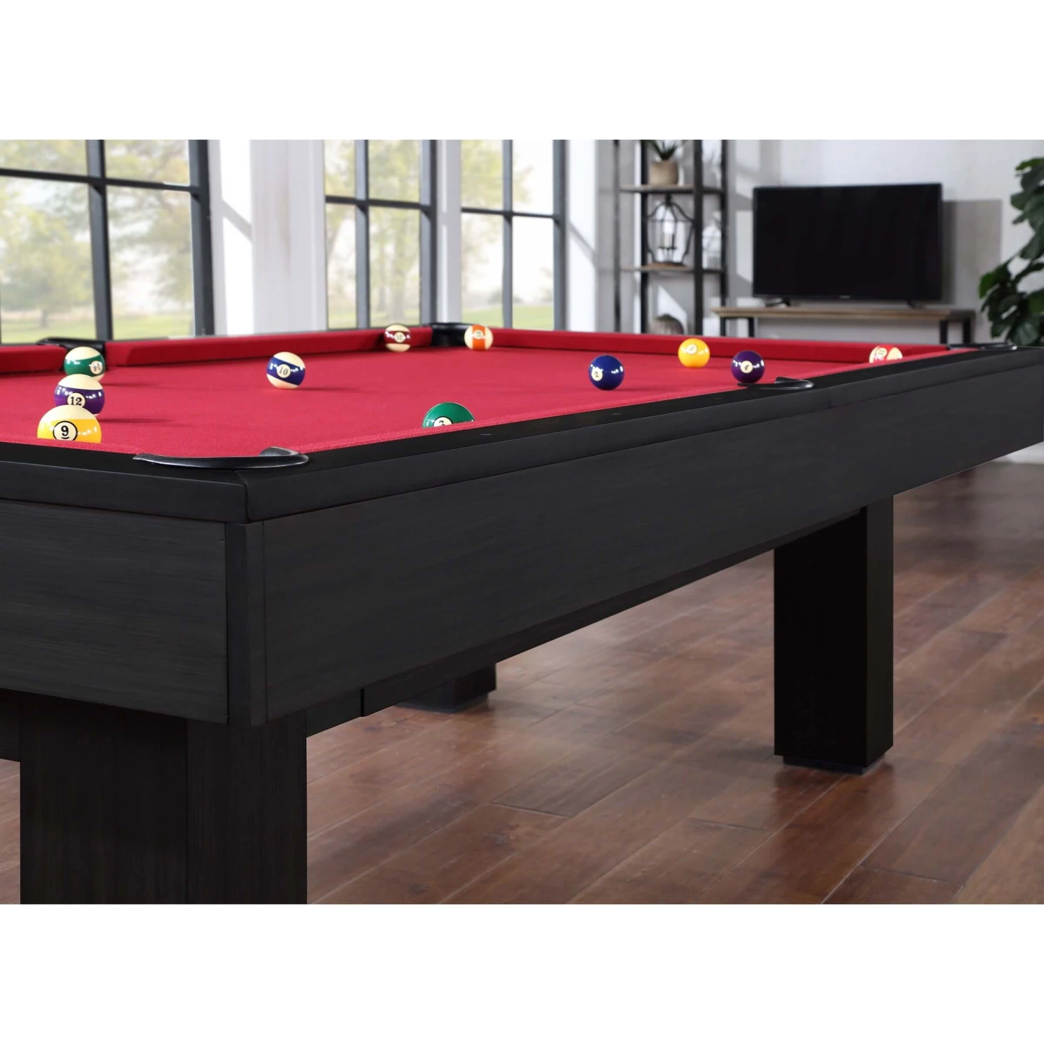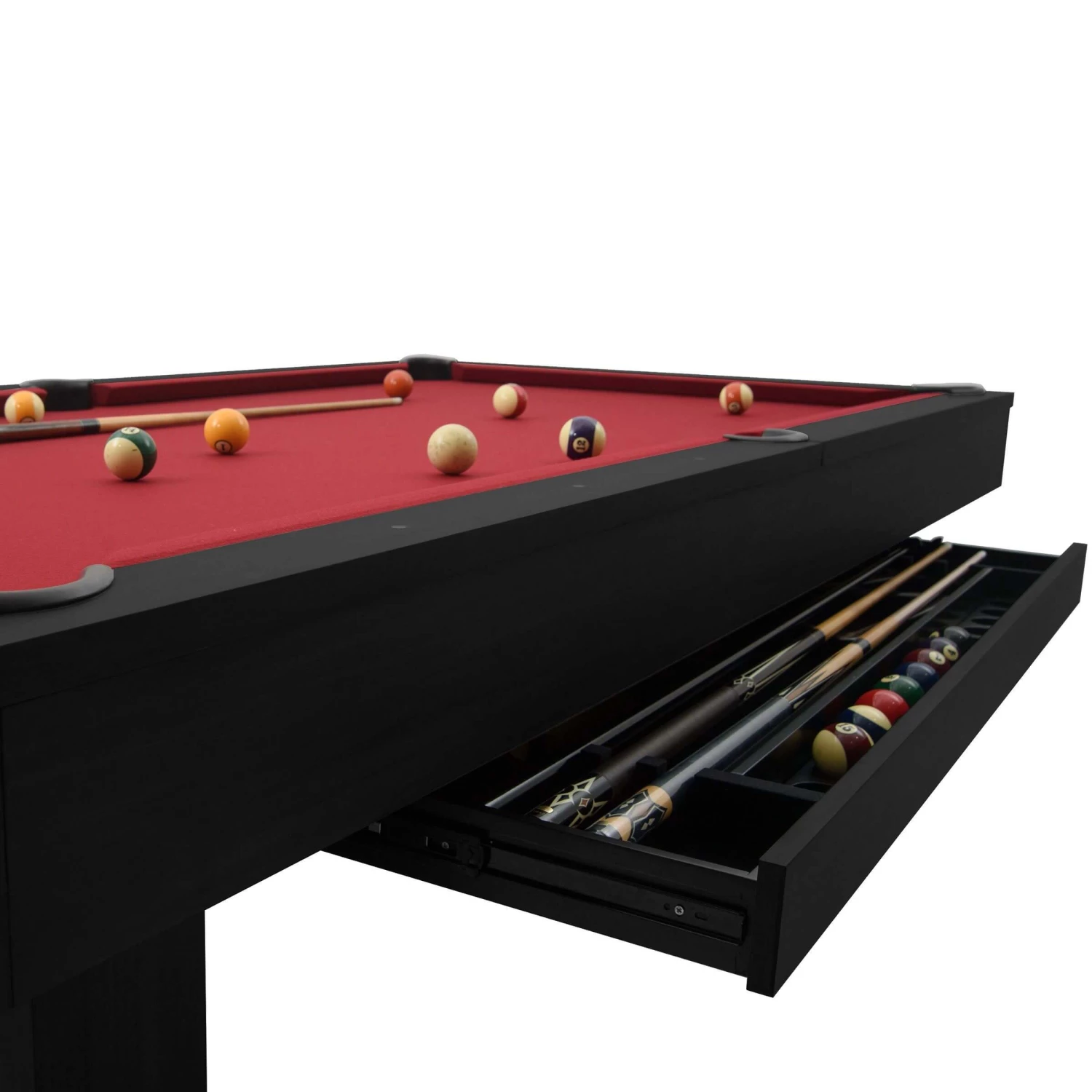 The Imperial Brookline billiard table is built with a timeless contemporary design. It features solid wood construction with clean, strong lines defining the legs and body for an overall versatile look that matches with any style of room. This table also features a hide-away drawer that will keep game accessories from cluttering the space around the table.