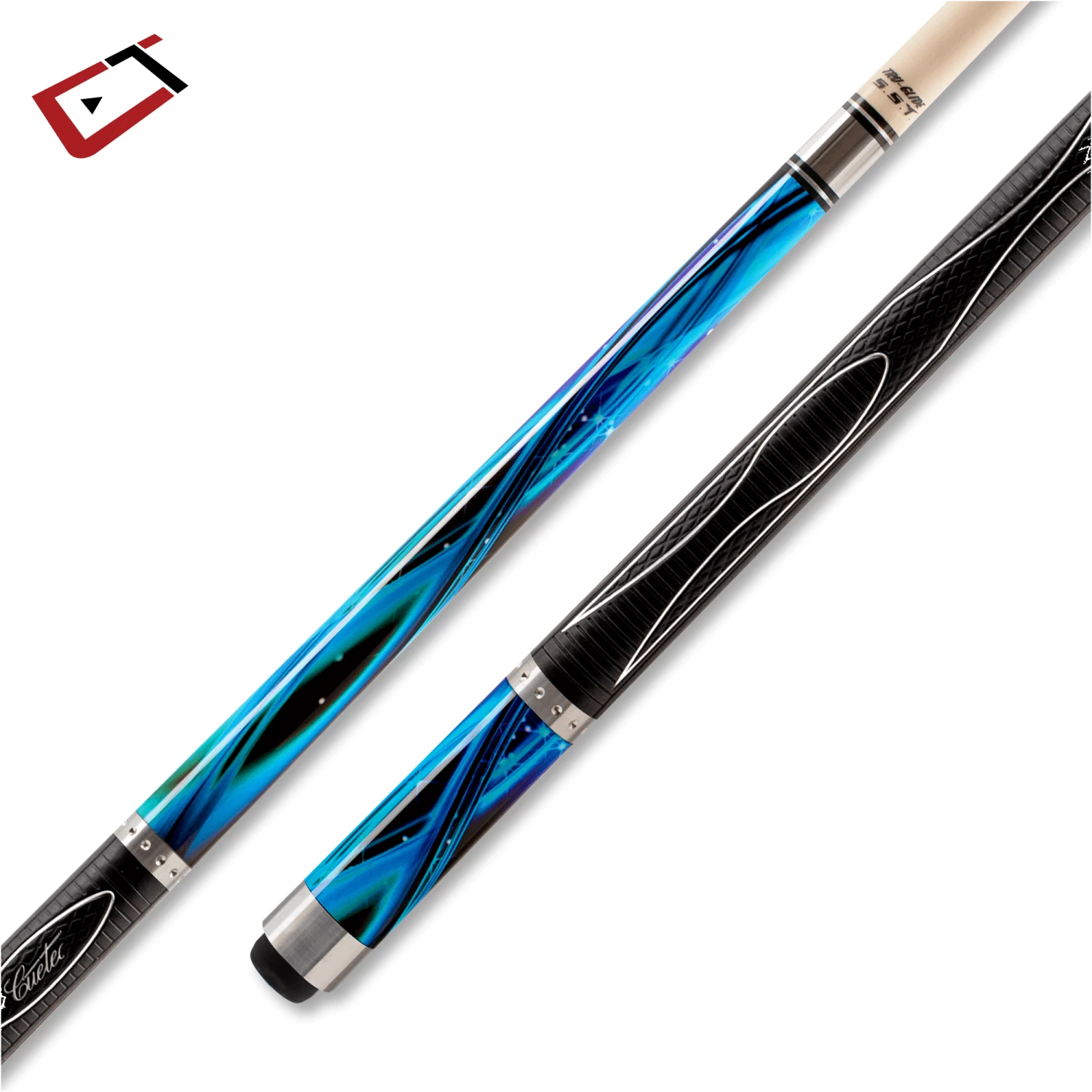 All Cuetec Gen-Tek Series Cues feature a Tiger Everest ten layer Pigskin tip with a red replacement indicator layer, Polycarbonate ferrule for impact absorption, Super Slim Taper (S.S.T.) shaft featuring a 15 ½” pro taper and Tru-Glide finish for an ultra-smooth comfortable stroke. Clear fiberglass is bonded to Grade A North American Maple for warp, dent, ding, and scratch resistance. Stainless Steel accents and Contemporary designs with a cushioned P.U. Sport grip for comfort. The Acueweight weight adjustment system makes it easy customize the weight and balance. Simply unscrew the chrome butt cap with bumper attached (do not remove the bumper) to adjust weight and balance with a flat or Phillips head screwdriver. Weights are available in ½ and 1 ounce increments (sold separately).