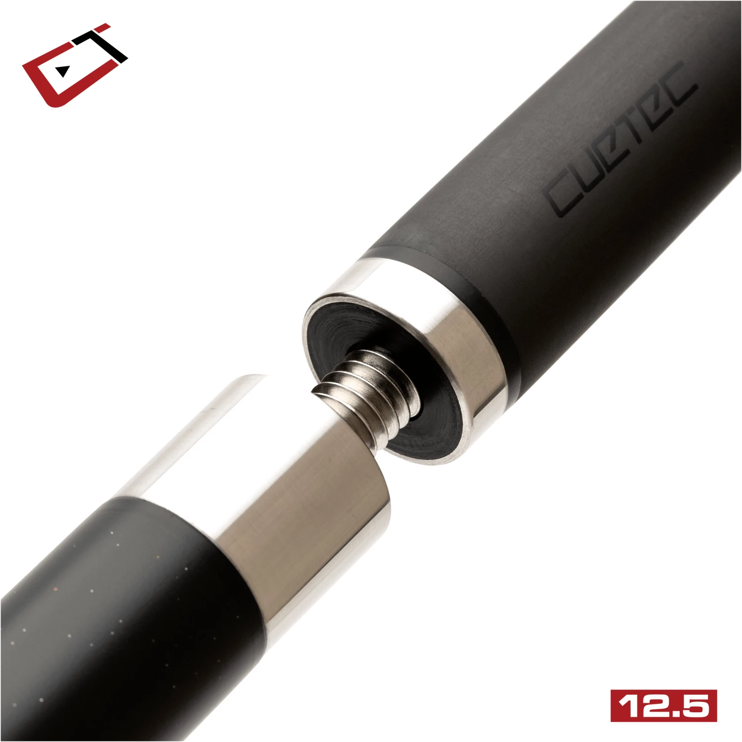 The Cuetec Cynergy 12.5 Carbon Fiber Composite Shaft provides the ultimate in feel, feedback, and consistent accuracy. Designed and developed with the input and direction of five-time U.S. Open Champion, Shane Van Boening, each Cynergy 12.5 is wrapped with a unique pattern of spun 15K carbon fiber tow, reinforced by Cuetec’s proprietary poly-foam core. Every 12.5 utilizes an elongated 15.5 inch super-straight taper for a perfectly level stroke, an ultra-thin white sighting ferrule, and laminated Tiger® Sniper tip to create a shaft that is packed with the benefits of carbon fiber performance without sacrificing the feel and feedback of traditional wooden shafts.