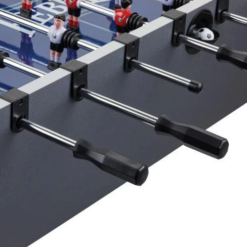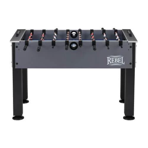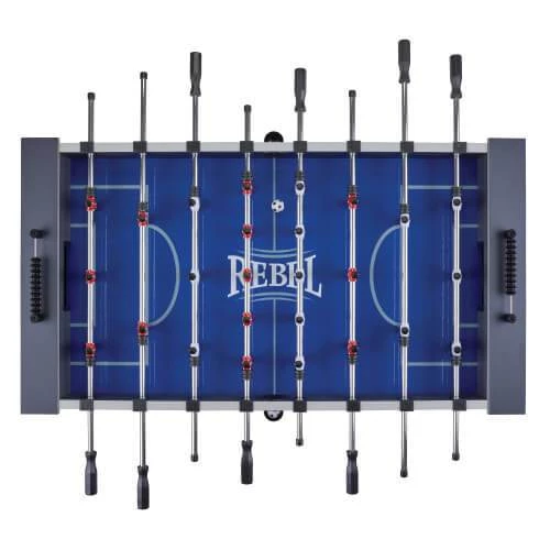 Complete the look of your game room with the classic style of the Fat Cat Rebel Foosball Table. The Rebel features a timeless design on a new body, combining traditional and modern looks. With its Vintage colors on a modern design, the Rebel is sure to complement most decors. The Rebel features new play features as well, foremost of which are the Quick Snap player rods, which get you playing your favorite game right out of the box. Completing the Rebel are highly detailed soccer style foosballs and men.