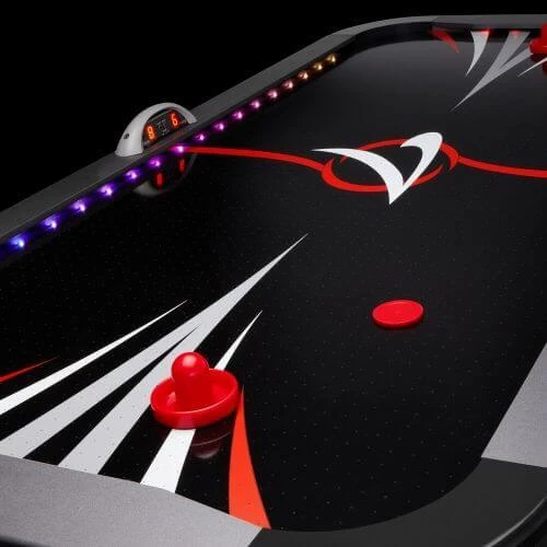 The newest innovation in AIR-POWERED HOCKEY is the Fat Cat VOLT with exclusive LED illuminated play-field! The Volt features EXCITING new play-field graphics that will invoke the feeling of FIERCE competition. With a powerful motor supplying a generous cushion of air, the Volt plays FASTER than any table that has come before it. This ALL-NEW table features an EXCLUSIVE LED lighting system that gives each game a unique experience from other tables. The LED display syncs with the Volt music system that tells the story of the game and flashes bright when players score. Your game room will never be the same!