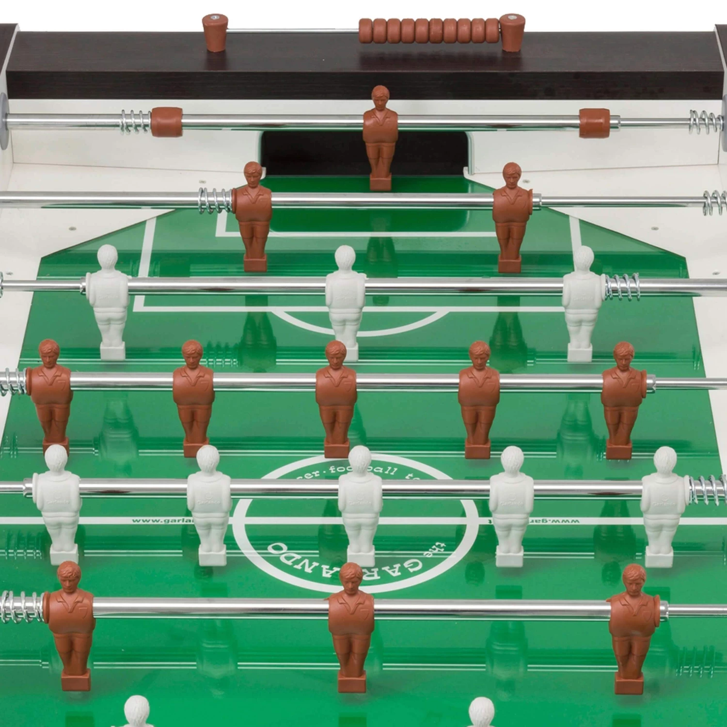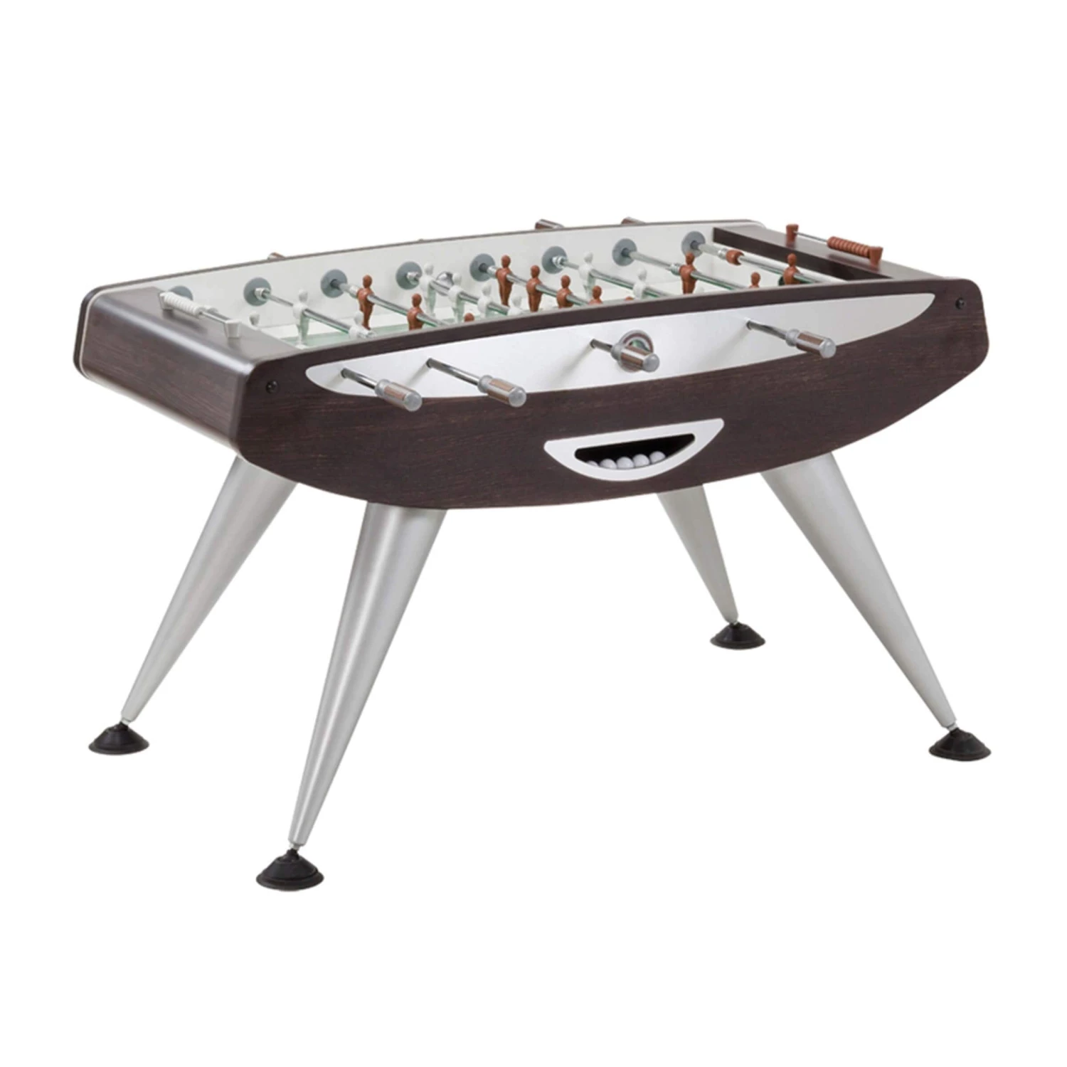 The foosball table celebrating the Garlando’s 60th anniversary is destined to connoisseurs who have a taste for style and refined objects and simply the best. It’s sleek but sturdy cabinet in an elegant wenge coating is enhanced by the brushed aluminum and wooden finishings and features a complete absence of visible screws and plastic details, for the smoothest appearance.