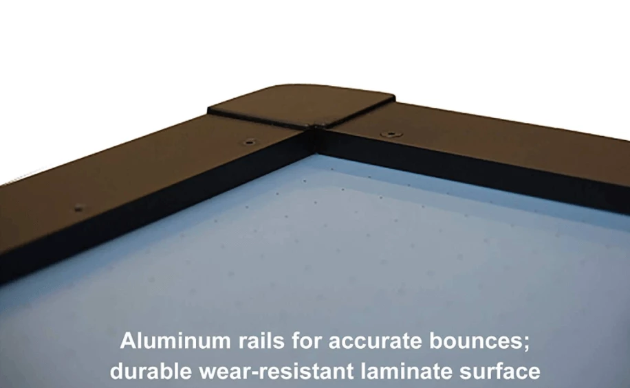 The Home Pro Elite features professional-style aluminum rails for superior bounce and bankability that makes air hokey so exciting. The surface is topped off with a special wear-resistant laminate that will protect this table to last for years of game play. Excellent air cushioning ensures speedy puck action that will not drag or show down.