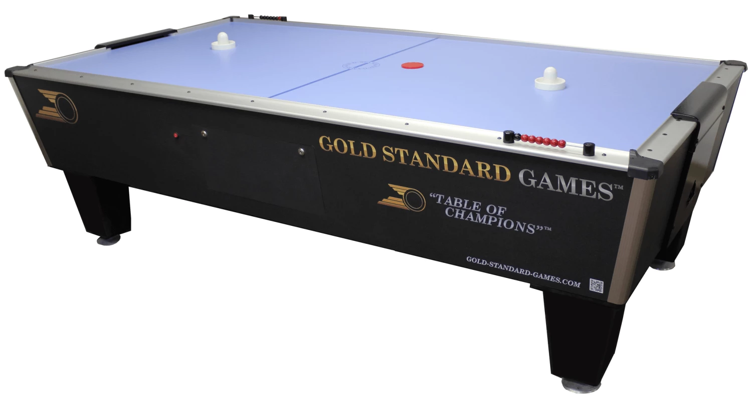 Gold Standard Tournament Ice Air Hockey Table is the finest crafted table on the market and is created by air hockey champion Mark Robbins. This premium table is at the top of its caliber and suitable for those who are looking to play their best on the best.