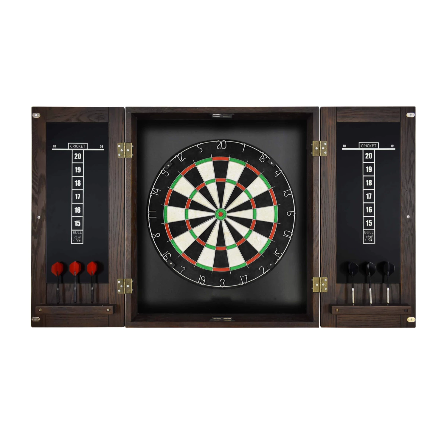 - Oak wood, bristle dartboard, metal, plastic