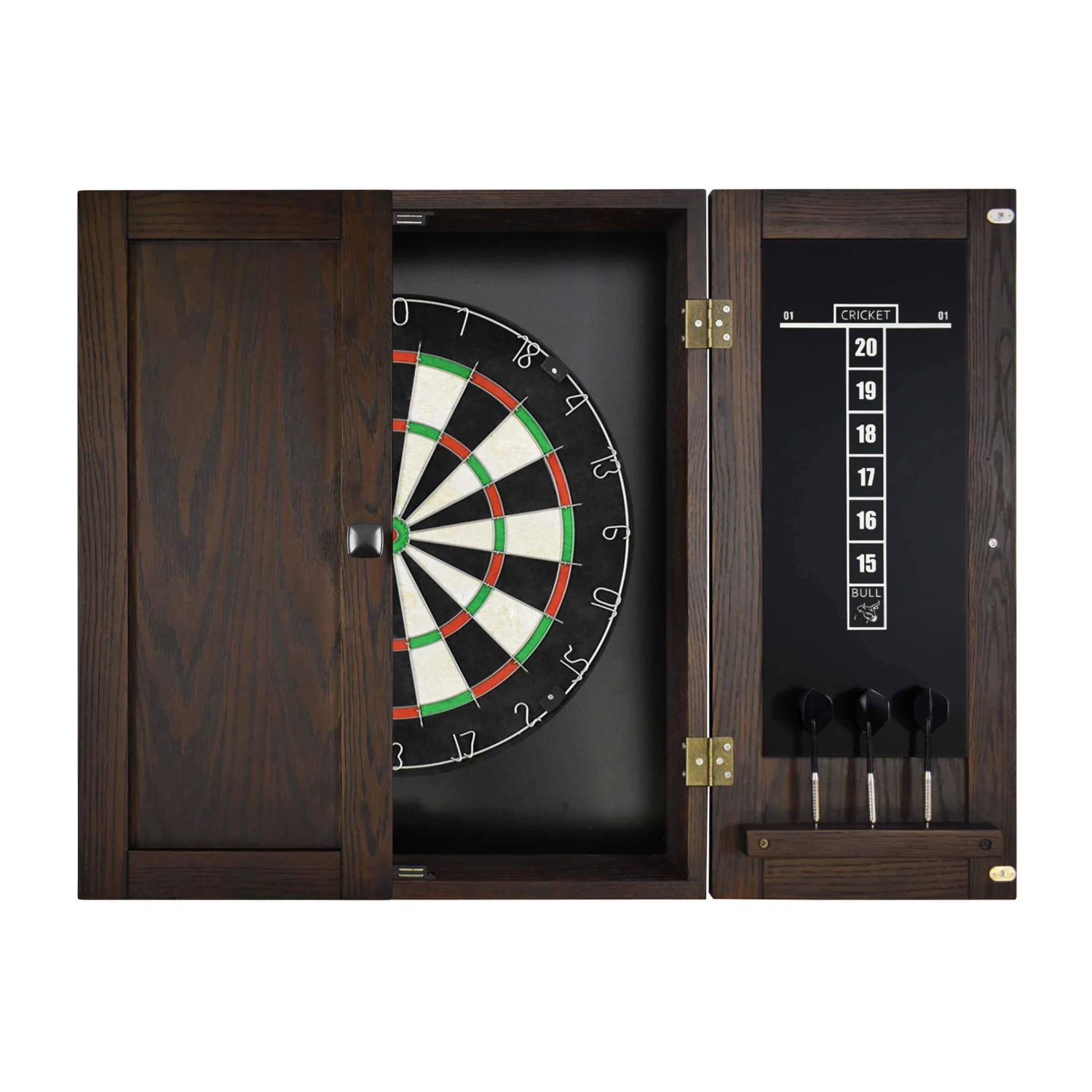 - Assembly is simple; just attach the dartboard to the inside of the cabinet, mount the cabinet to the wall of your choice, and you’re ready to play.