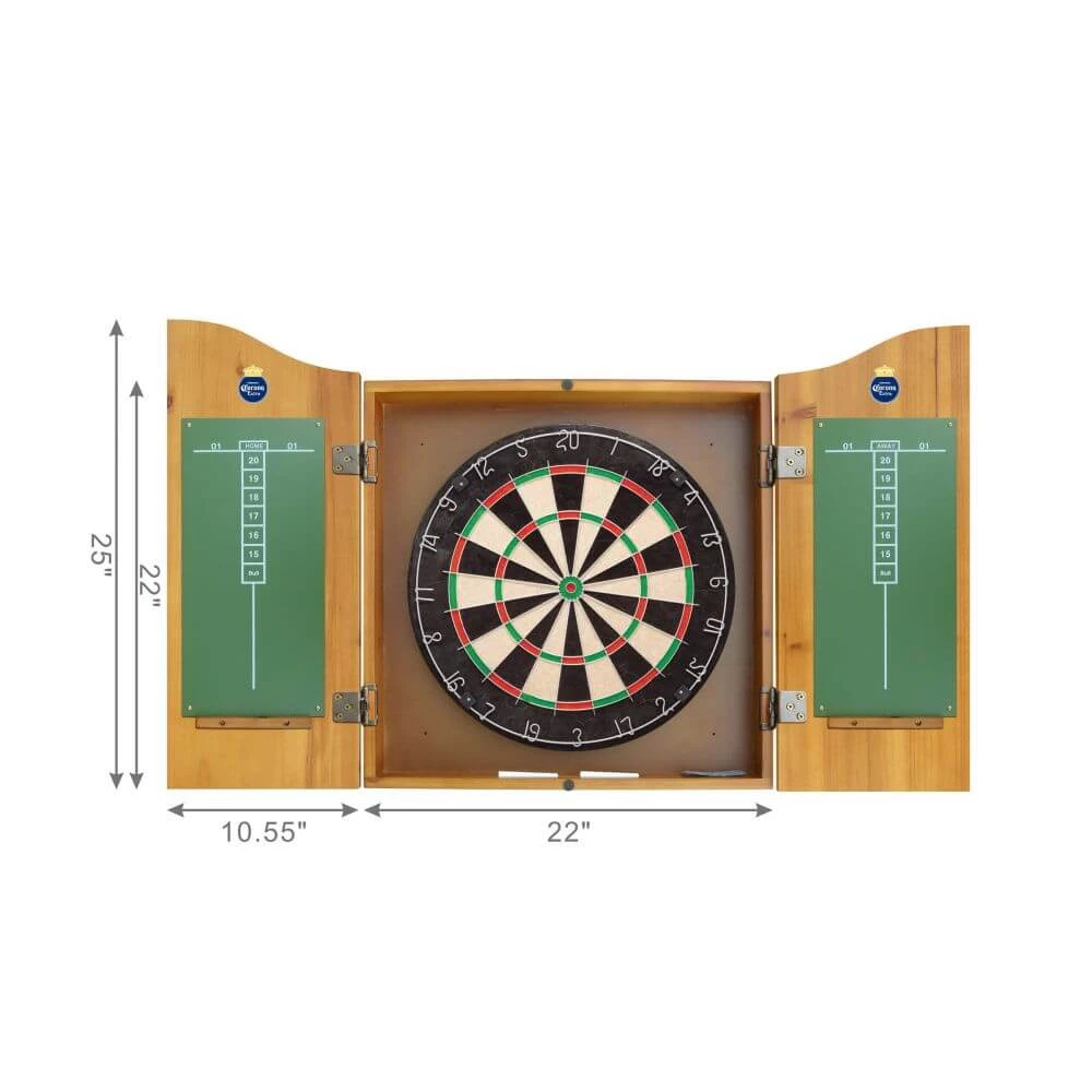 - Assembly is simple; just attach the dartboard to the inside of the cabinet, mount the cabinet to the wall of your choice, and you’re ready to play.