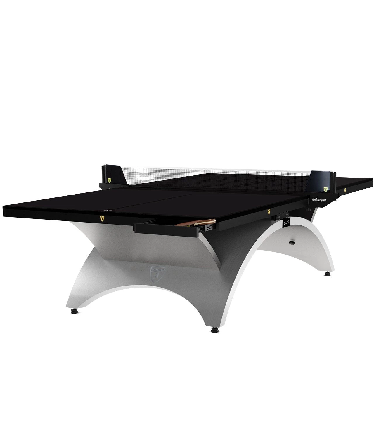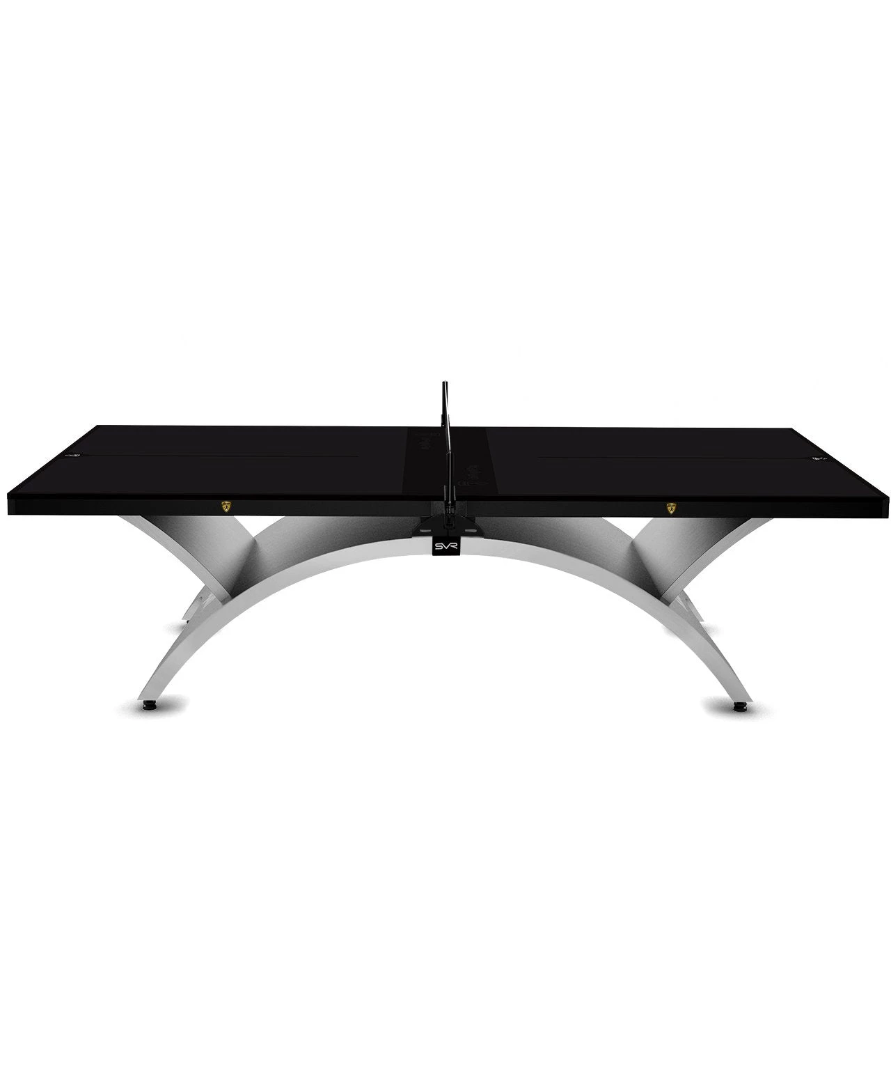 Take your table tennis experience to the next level with the Revolution Indoor Ping Pong Table. The expertly crafted arched steel base with sleek Alubond aluminum paneling, sleek black tabletop with scratch-resistant finish, and premium Apex net post set will instantly become the focal point of your home or office.