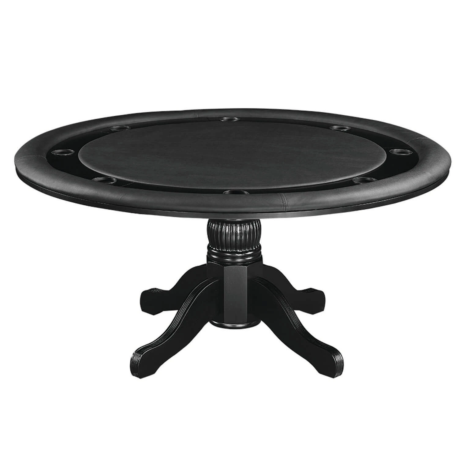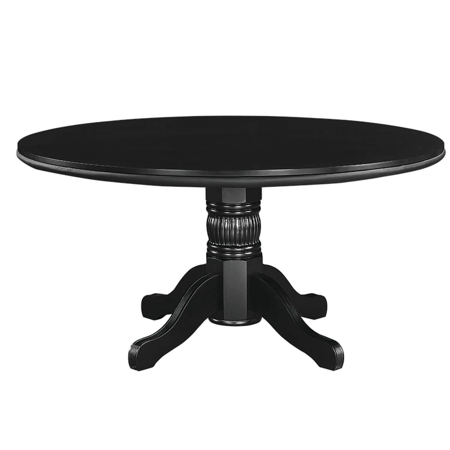 A gorgeous game table finished in black. Solid wood construction with a padded vinyl playing surface. Your cards will elegantly slide across this surface, or you can flip the top for a perfect dining top option.