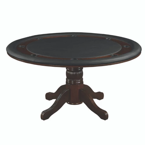 A gorgeous game table finished in cappuccino. Solid wood construction with a padded vinyl playing surface. Your cards will elegantly slide across this surface, or you can flip the top for a perfect dining top option.