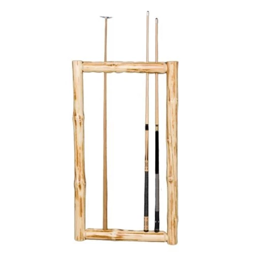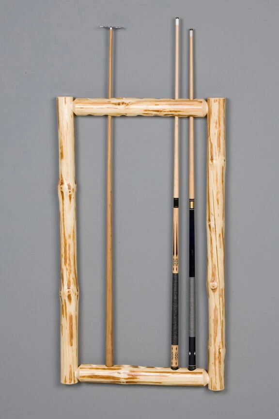The Klondike log wall cue rack will match perfectly with the Klondike pool table, but it can also go with any log, lodge, or rustic style billiard table. This rustic cue rack is constructed using solid pine logs. It will hold up to six cue sticks. If you don’t have a lot of room for a cue rack and want something simple, this one is perfect for you! Hang it on your wall, and no floor space is lost.