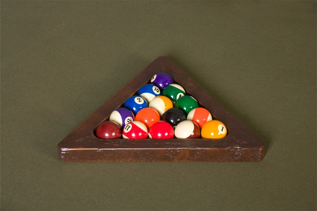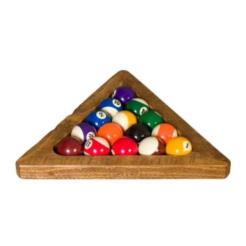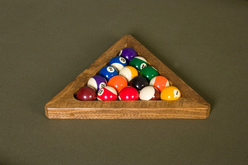 This rustic pool table triangle is designed to encase a set of billiard balls, for a classic game of billiards. It will match any lodge, rustic, or western style billiard table. It will also pair nicely with our Timber Lodge, Cheyenne, or Sawtooth Hickory billiard table. This billiard table triangle is hand crafted using rough sawn pine.