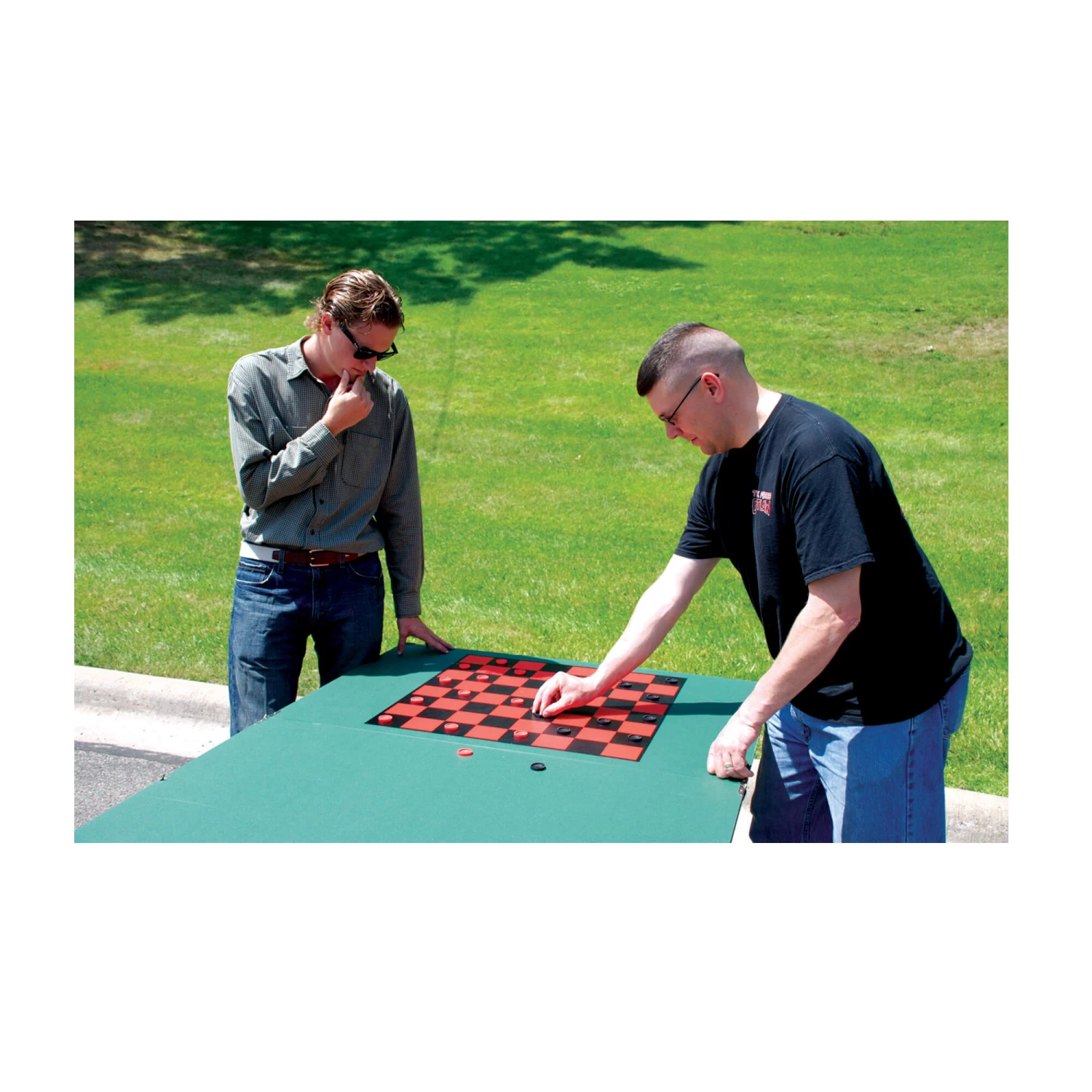 - Play your choice of games, the reverse side of the table tennis top features boards for chess, checkers and backgammon.