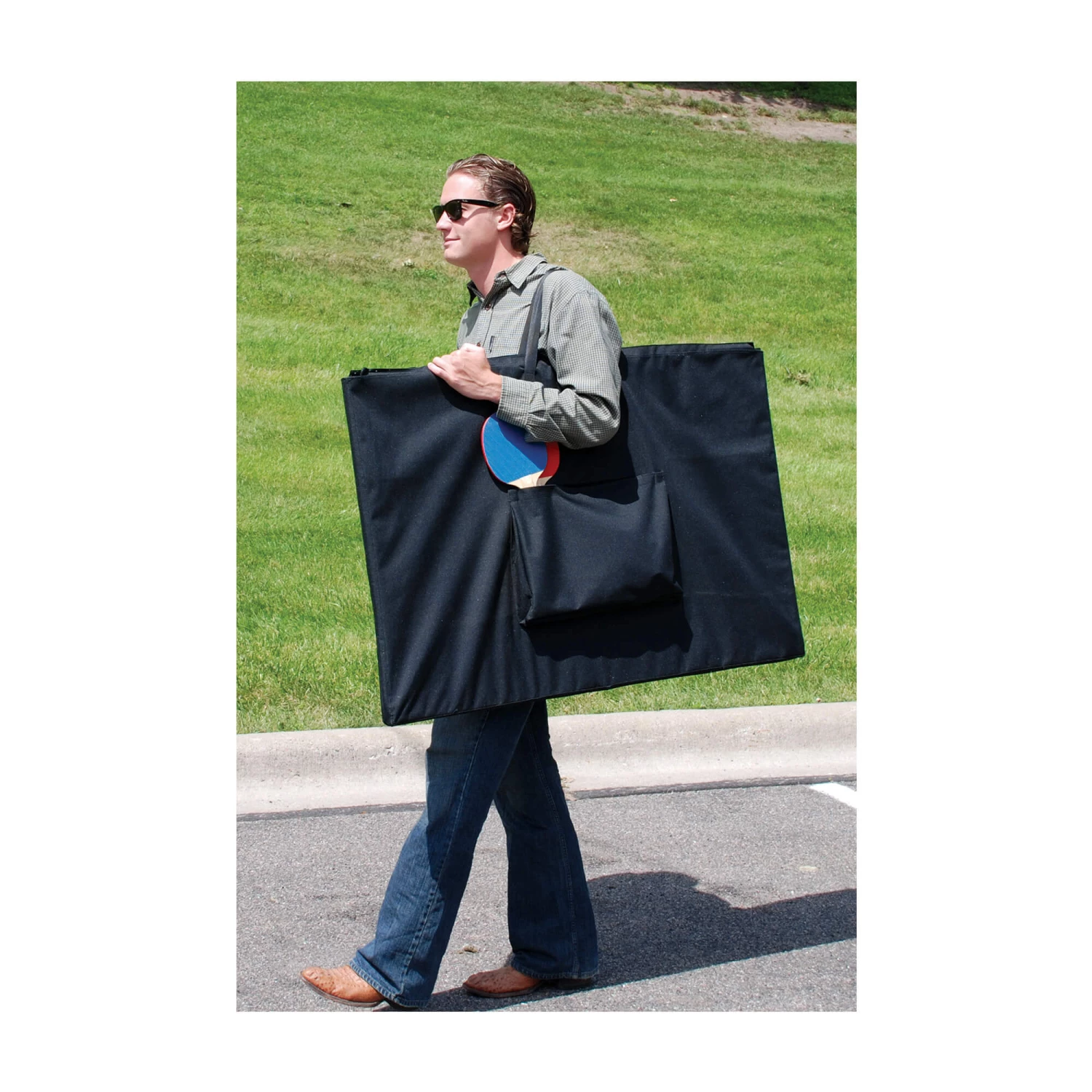 Take all the fun of fun competition anywhere you go with the Viper Portable Table Tennis Table Top! This revolutionary design allows you to take your favorite game to places you never thought before! The Viper Table Top can be placed on dining tables, kitchen islands or used to convert pool tables or air hockey tables. The tri fold table is made from medium density wood for excellent durability while maintaining a lighter weight for ease of transport. The portable table tennis top is not only fun for table tennis, but on the reverse side the table top features screen printed checker, chess, and backgammon boards for additional ways to play! In this special bundle everything you need to play each game mode is included: the net and post set, two paddles, two table tennis balls, a set of chess pieces, a set of chips that can be used for checkers or backgammon, and a convenient carrying case with side pocket.